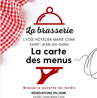Les professeurs et les élèves du lycée hôtelier Marie Curie de Saint Jean du Gard, ont le plaisir de vous présenter les menus du 1er trimestre qui vous seront servis au restaurant « Le Panoramique », du mardi au vendredi.